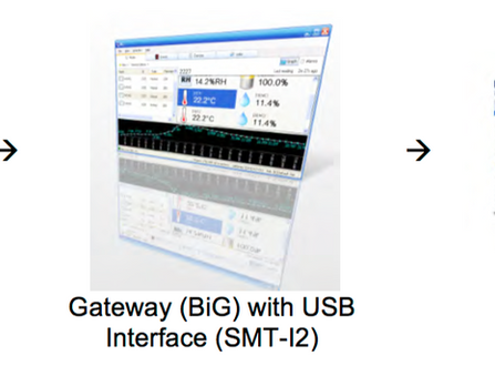The SMT-A3 communicates wireless sensor readings to the SMT Building Intelligence gateway. Optional powered repeaters can be used to extend the wireless range.